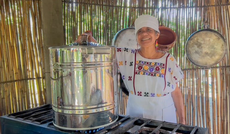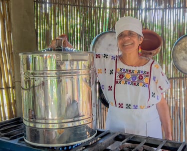 Nuestras instalaciones son simples y hermosas. Intencionalmente, buscamos no reproducir la zona de confort a la que están acostumbrados nuestros visitantes en la vida cotidiana: se pernocta en palapas de palma con pisos de tierra; se hace uso de baños secos, se cocina con leña y se degusta conscientemente con ojos vendados, en silencio y con las manos. Ello ha demostrado ser un pivote para la apertura al cambio que se requiere para la auto transformación.