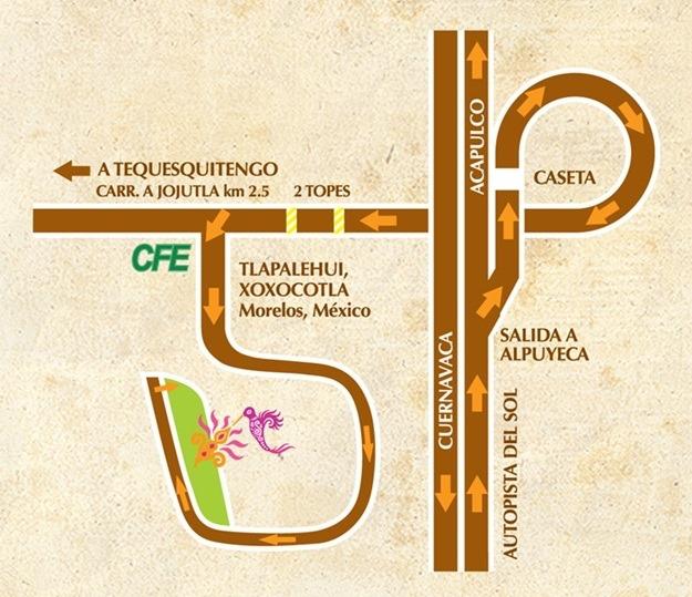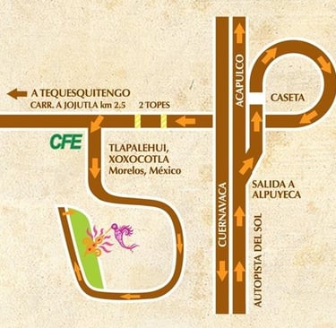 Pasar Cuernavaca y continuar hasta llegar a la primera caseta de Alpuyeca (ubicada al costado derecho).
