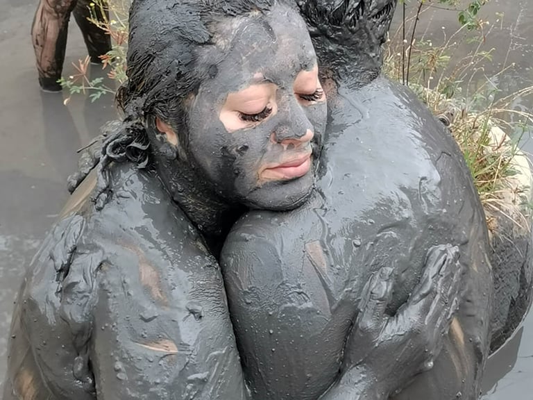La Poza de Barro es una experiencia de profunda integración con la Madre Tierra. El barro contenido por la forma de una tortuga, es extraído de varios metros de profundidad y tiene un ligerísimo olor a azufre lo que le permite extraer del cuerpo físico, todo exceso de fuego; es decir, todo lo que está inflamado o adolorido. La energía de vida y fuerza amorosa de la Madre penetran así, a través de la piel que es el órgano más grande que tenemos.