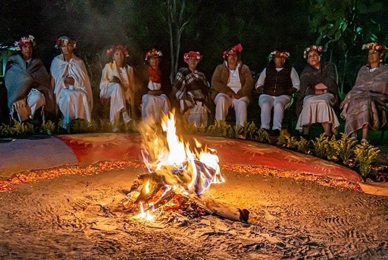 El Círculo Ceremonial es un lugar de poder. Tiene al centro una media luna que custodia el encendido del Fuego Sagrado. A su alrededor se realizan cantos, danzas y la Ceremonia de Pipa Sagrada. Los sábados por la noche, uno se confiesa ante el Abuelo Fuego sobre la manera en que está llevando su vida. A él se le pide su poder de transmutación para purificar todo aquello que nos impide caminar con firmeza e impecabilidad y, también, para abrir los rumbos a nuevos derroteros.