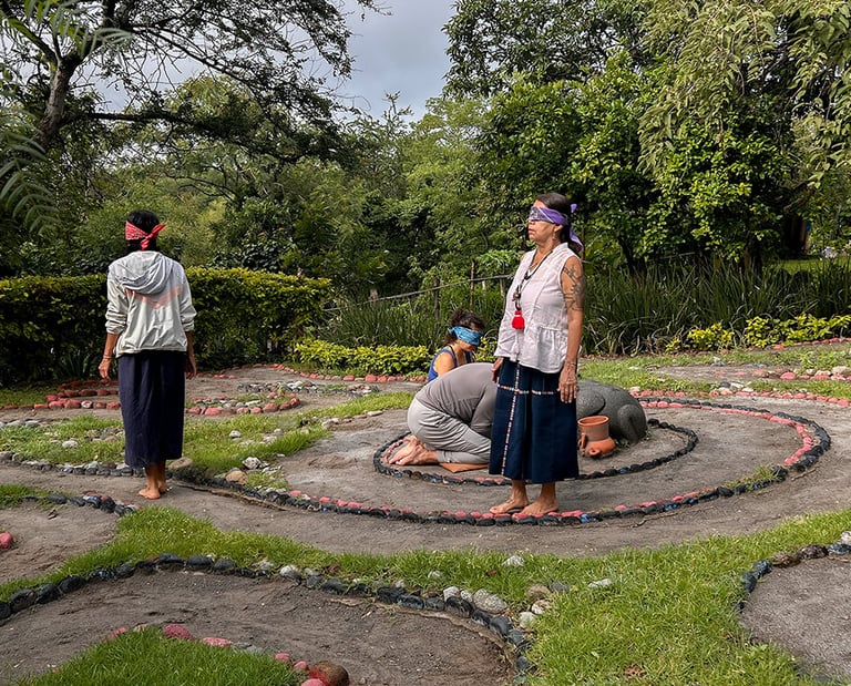 De ida se recapitula y asiente a la vida tal y como ha sido. La estancia en el centro sirve para reconectarnos con el aquí y el ahora; con la realidad tal y como es y con la Fuente; el origen del cual provenimos. Se recibe el rezo de los ancestros y del mundo espiritual para que nuestra vida se alinee con nuestro propósito de existencia.
